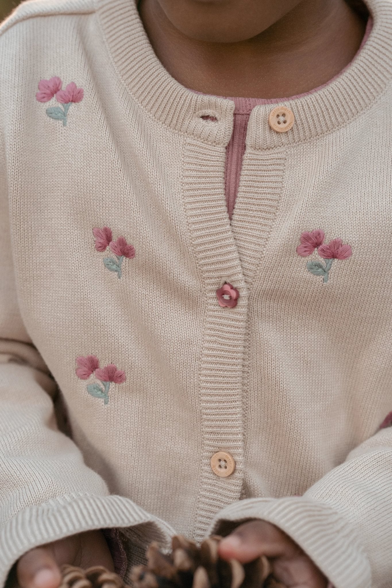 Little Dutch Gebreide Cardigan - Sand Met Bloemetjes