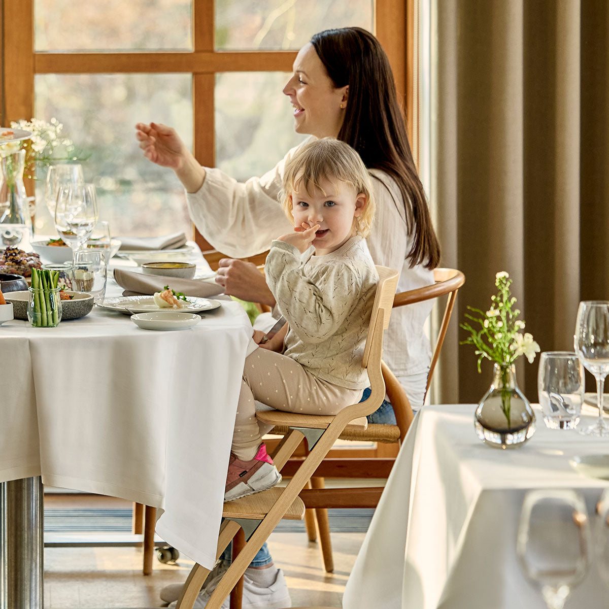 Vanaf 6 maanden kan je baby veilig en comfortabel aan tafel zitten. Voeg eenvoudig een veiligheidsbeugel, zacht kussen en dienblad toe voor extra gemak en bescherming (apart te verkrijgen). De voorgevormde rugleuning zorgt voor een goede ondersteuning van de rug, terwijl de stevige constructie maximale stabiliteit garandeert.