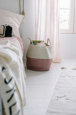 Handgemaakte Opbergmand met Handvatten – Roze & Naturel
