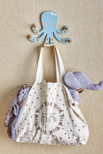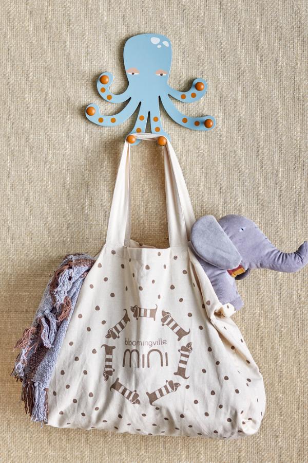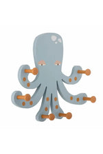 De Oswall kapstok van Bloomingville MINI is een charmante octopus die zowel speelsheid als orde brengt in de kinderkamer. Met zijn vergrijsde blauwe kleur en roodachtige tinten op de haken creëert hij een gezellige sfeer en trekt hij de aandacht van je kind. De zes armen, elk met een stevige haak, bieden gemakkelijk plaats aan jassen, tassen en verkleedkleren.