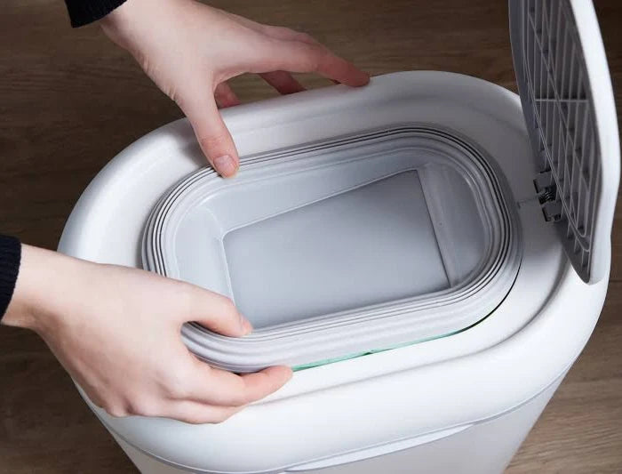 - De luieremmer is gemaakt van 100% recycleerbaar plastic