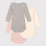 Petit Bateau | Set Van 3 Katoenen Body’s Met Lange Mouwen - Roos/Grijs/Wit