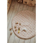 Een uniek gewatteerd baby-speelkleed dat tegelijkertijd ook opberg-speeltas en luiertas is. 120 cm in diameter en gemaakt van GOTS biologisch katoen om de baby maximaal plezier en comfort te geven. Dit speelkleed en luiertas is zo praktisch en functioneel voor dagelijks gebruik.
