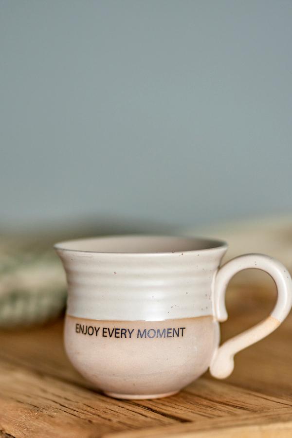 De Claire mok van Creative Collection is versierd met de tekst "Enjoy every moment". De mok is gemaakt van aardewerk en heeft een beige glazuurlaag. Een gezellig cadeautje voor de gastvrouw. Door de aard van het glazuur kunnen er kleurvariaties voorkomen.