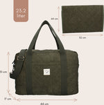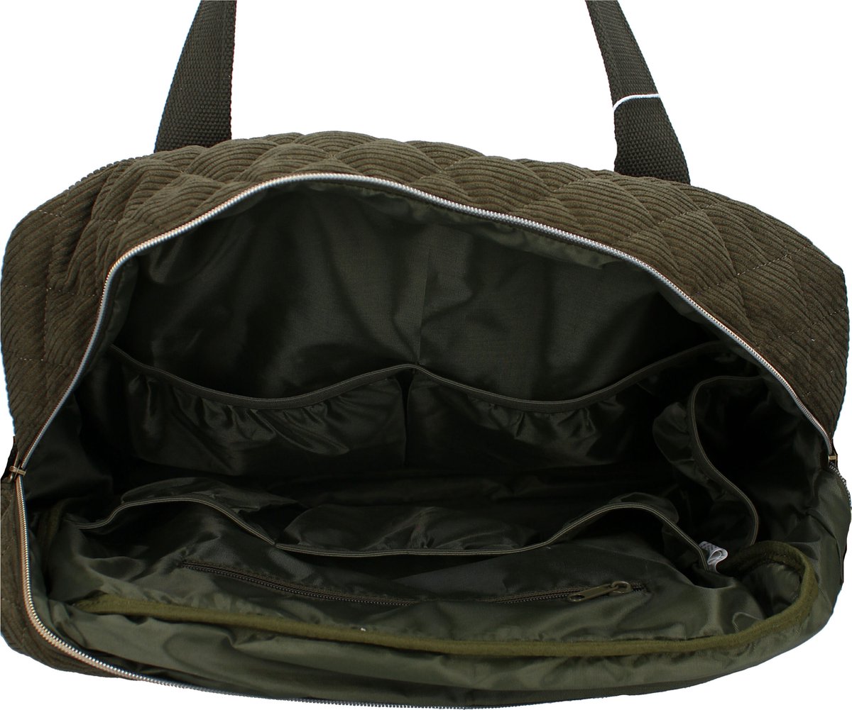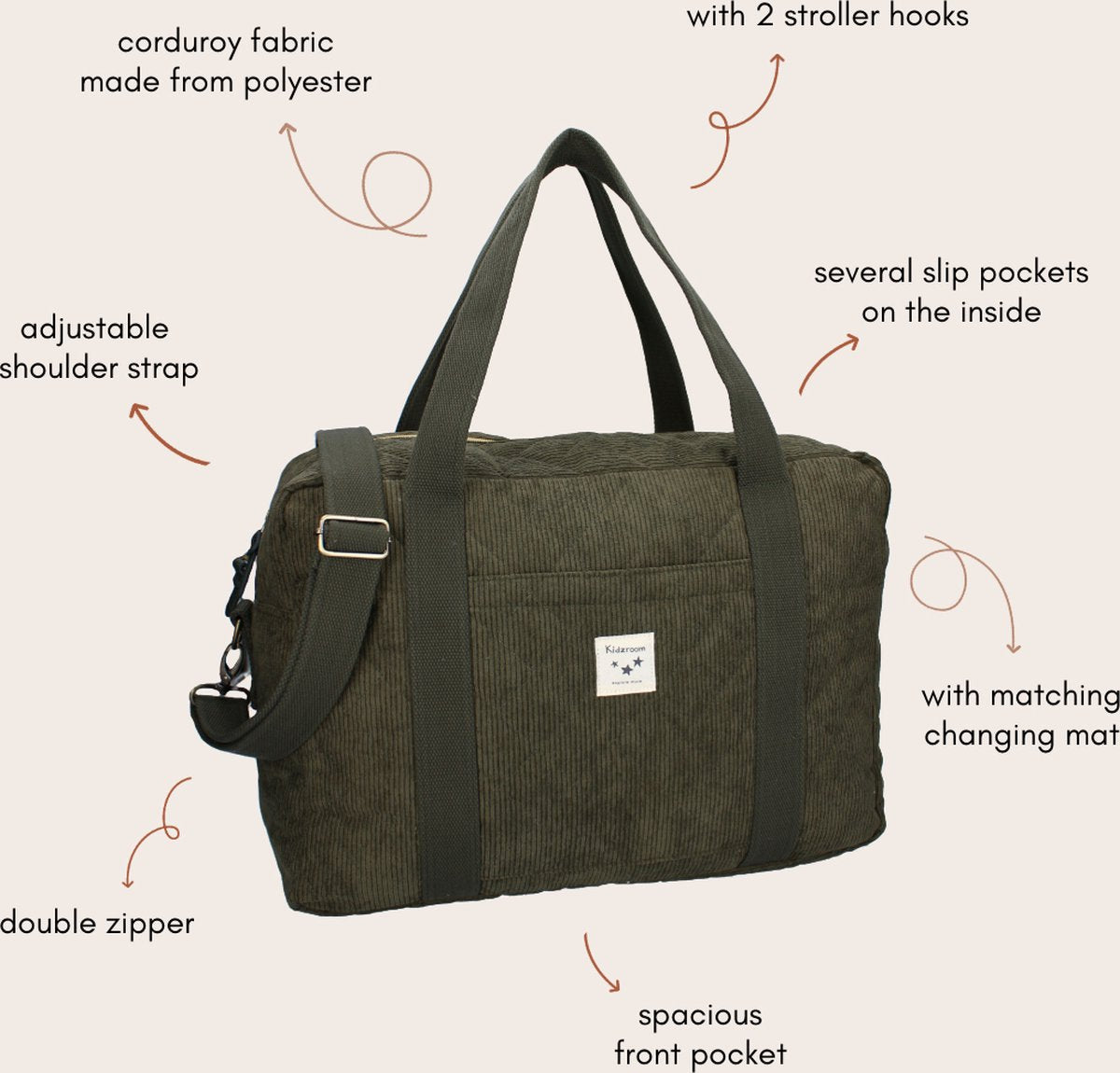 Eenheid prijs / PerOntdek de ultieme combinatie van stijl en functionaliteit met de Luiertas Kidzroom Care Thinking Little Thoughts, speciaal ontworpen voor stijlvolle moeders die op zoek zijn naar een praktische en elegante oplossing voor onderweg. In een verfijnde army kleur en ribstof straalt deze luiertas tijdloze elegantie uit. Met een ruim hoofdvak inclusief meerdere steekvakken voor bijvoorbeeld flesjes en luiers biedt deze tas voldoende opbergruimte voor alle benodigdheden voor een kleintje!