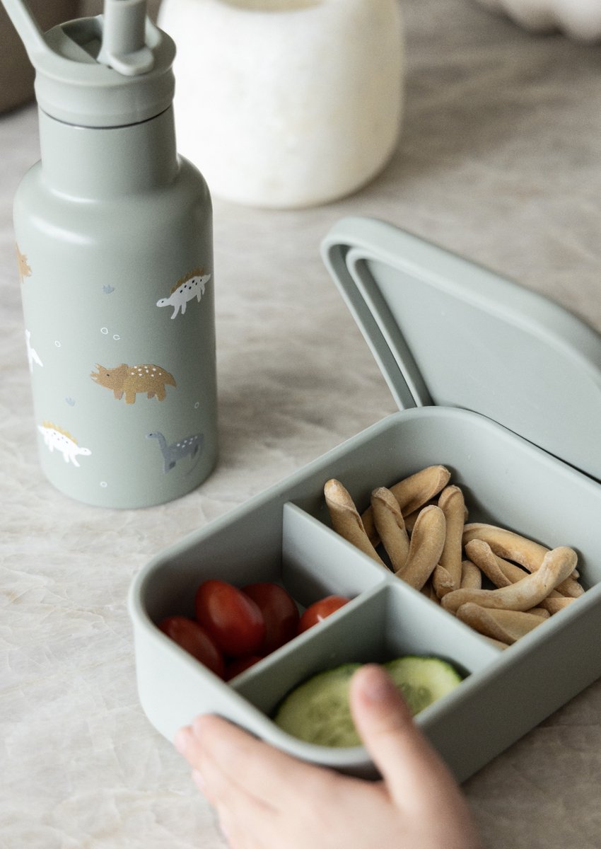 Eenheid prijs / PerDeze prachtige lunchbox van Kidzroom uit de 'Small Talk' collectie is een echte must-have voor kinderen. De lunchbox heeft een stijlvolle groene kleur en is versierd met dino's. Dankzij het zachte siliconenmateriaal is de lunchbox eenvoudig te openen en te sluiten, perfect voor kleine kindjes. De binnenkant is slim ingedeeld in drie compartimenten, zodat je alle onderdelen van de lunch netjes en vers kunt houden. Door het silicone materiaal kan hij in de magnetron en in de vaatwasser. Praktisch én schattig! Voeg deze betoverende lunchbox van Kidzroom vandaag nog toe aan je assortiment.Bekijk en shop ook de bijpassen drinkbeker en rugzak van de ‘Small Talk’ collectie om de set compleet te maken. Bekijk en shop ook de bijpassen drinkbeker en rugzak van de ‘Small Talk’ collectie om de set compleet te maken.