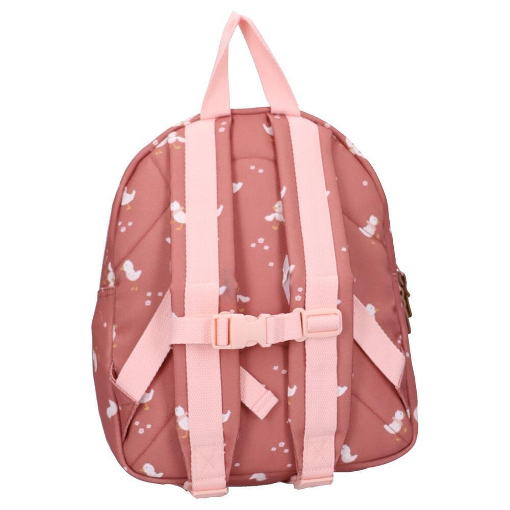 Dit leuke bruine rugzakje uit de Little Story-collectie is perfect voor elk avontuur en een echte must-have voor je kindje. De tas is gemaakt van gerecycled polyster en is vrolijk versierd met een speelse all-over eendenprint. Het ruime hoofdvak met dubbele rits biedt voldoende ruimte voor een broodtrommel en drinkfles en het praktische voorvak met rits is handig voor kleine spulletjes, ideaal voor school of een dagje uit. De rugzak kan gedragen worden aan de stevige lus aan de bovenzijde of comfortabel op de rug met de verstelbare schouderbanden. Dankzij de handige gespen op de schouderbanden blijft het rugzakje altijd stevig en prettig zitten. Binnenin is de tas voorzien van een naamlabel en een houder voor een drinkfles, zodat alles netjes op zijn plek blijft. Een vrolijk en praktisch rugzakje dat je kindje met plezier elke dag zal dragen!